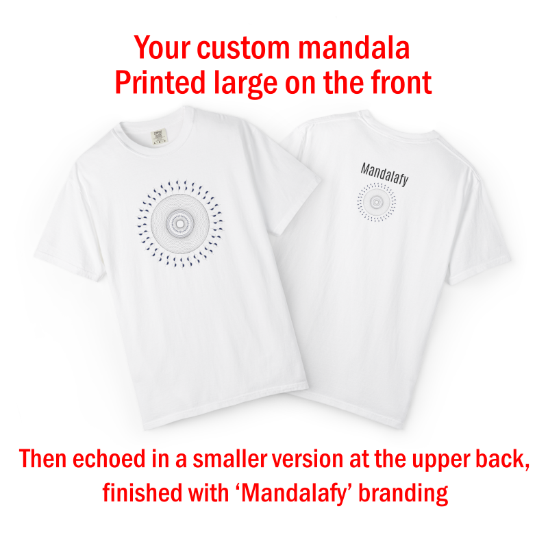 - 🎨 Dual Design Placement – Your mandala featured prominently on the front + tastefully echoed on the back with Mandalafy branding.