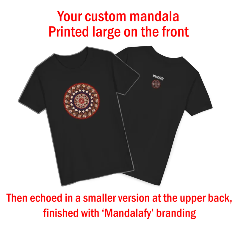 • 🎨 Front & Back Design – Your mandala featured prominently on front + elegantly placed on upper back
